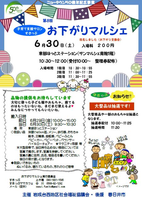 6月30日(土曜日)、第8回『お下がりマルシェ』(「お下がり交換会」から改名しました)が開催されます!